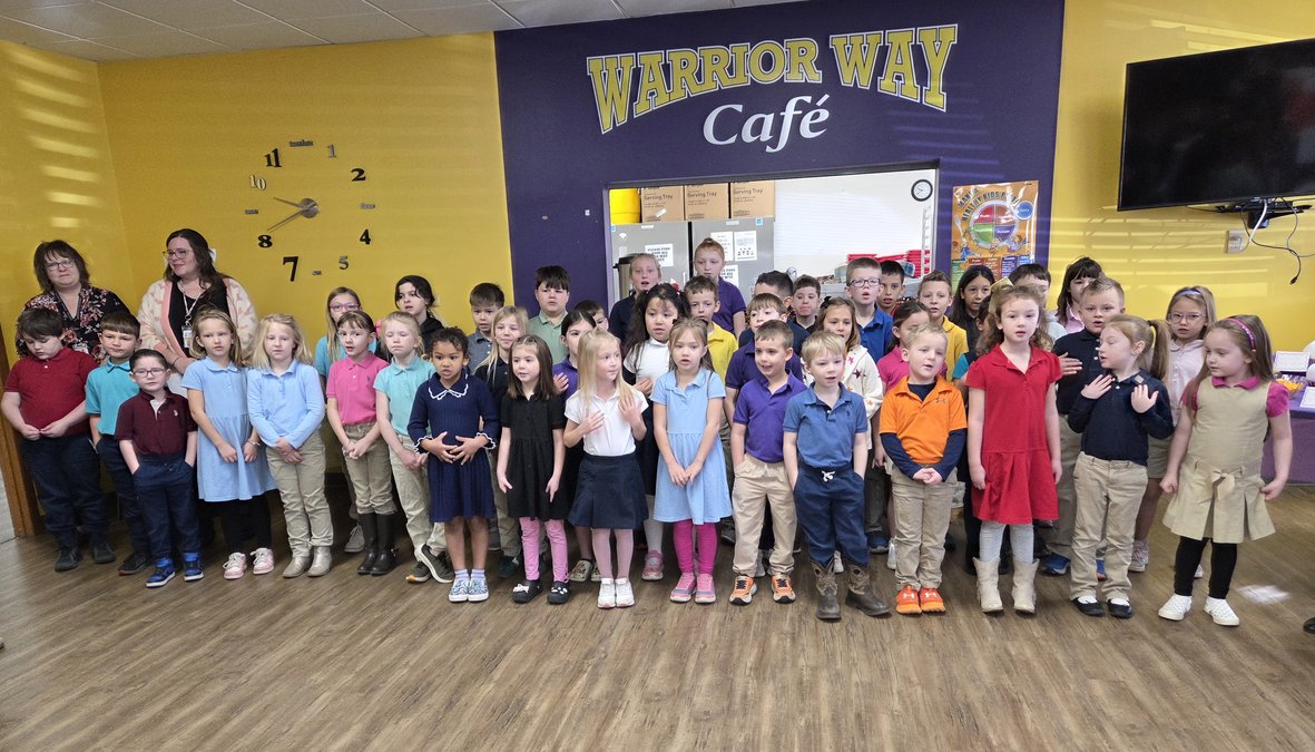 This year’s school theme is “Putting on the full armor of God.” Younger students have memorized the Bible verses that talk about that, and they recited Ephesians 6:14-17.