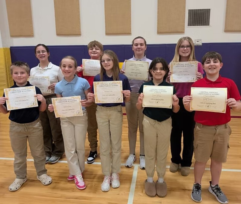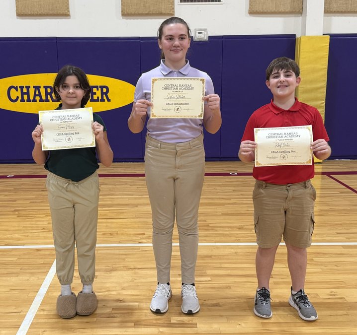 Central Kansas Christian Academy held its school spelling bee on Wednesday. Classroom winners from grades 3-8 had the opportunity to showcase their spelling skills in a school-wide competition using the Scripps National Spelling Bee program.