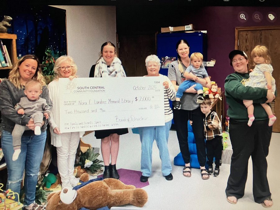 STAFFORD — What a fun Monday! We had Lisa from the South Central Kansas Library System getting the glitches out of our computers, kids and moms for story hour and the South Central Community Foundation stopping by with a $2,000 check to enhance our outreach to “Families and Friends.”