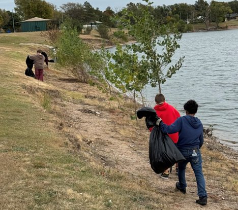 Youth at Juvenile Services perform community-service tasks at Brit Spaugh and Veterans parks in Great Bend recently. Laura Mason, community case manager, said “several park patrons thanked them for their efforts.”