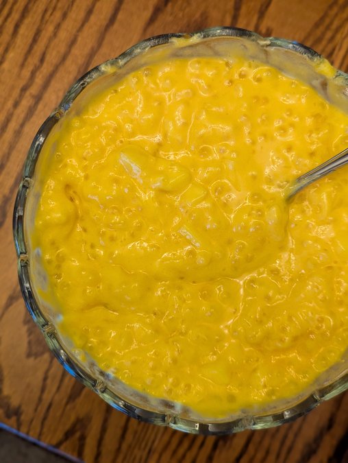 This was our first time experimenting with mango here, and while we will tweak it here and there in the future, I thought it was delicious. I never look forward to tapioca quite like the rest of my family, but then when I’m eating it, I realize I could just keep going. If you are familiar with this dessert, or with graham cracker fluff, please prove my familial theory wrong and tell me about it.