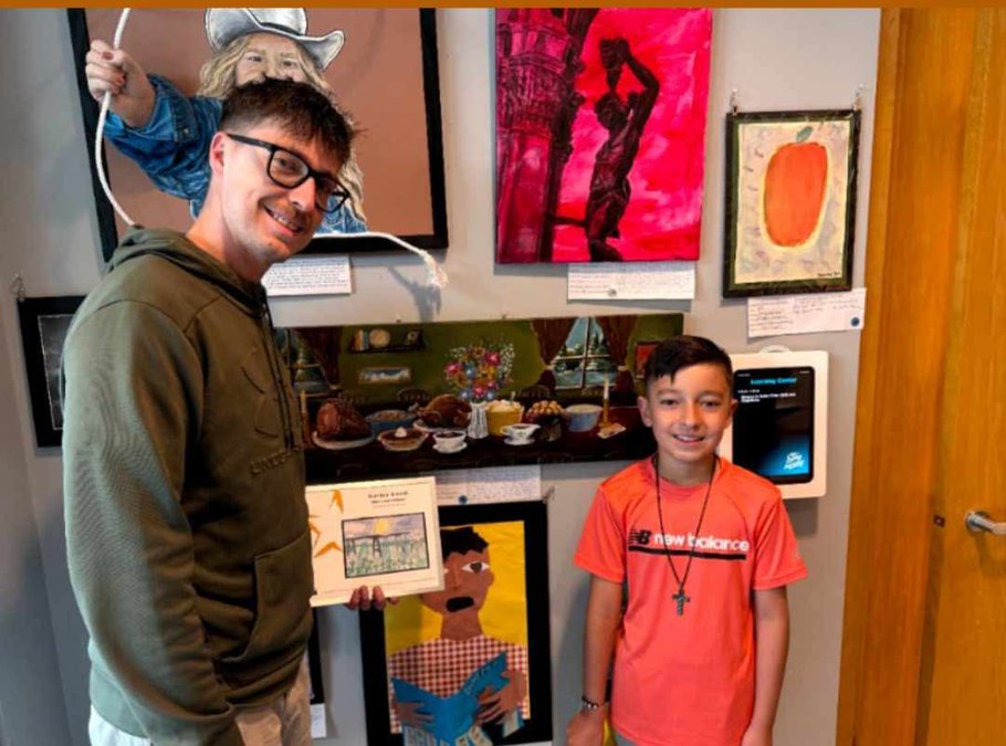 Great Bend fourth grader Ryder Reed’s artwork was chosen to represent Jefferson Elementary School at the Shawnee County Library in Topeka, making him the second family member chosen for that honor. When his father Taylor was in the 4th grade, his artwork was chosen as well, and he took first place in the state of Kansas overall among fourth graders. His artwork was on display at the Capitol and he got to meet the governor and tour the Capitol.