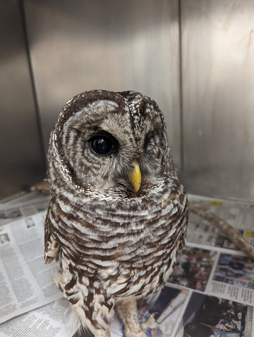 “The most common reasons we have birds brought in are due to being hit by cars and fledglings/nestlings blowing out of nests during storms or removed from their parents while they are learning to fly. Other reasons for intake include secondary poisoning by rodenticide, lead poisoning, window strikes, and we currently have an American Kestrel in rehab that was caught in a wildfire and its flight feathers were severely singed. Birds molt their feathers one or two times per year, so we are waiting for this individual to finish re-growing new feathers. We are optimistic it will be back in it’s natural habitat soon!”