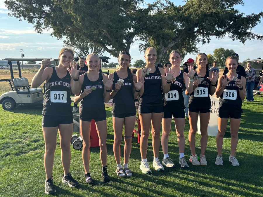 GREAT BEND—12—Isaac Aldana, 18:15.01; 18—Tavon Stroup, 18:33.2; 19—Noah Kaiser, 18:40.14; 23—Parker Coleman, 19:16.25; 29—Sullivan Luttrell, 19:38.29; 32—Alexis Garcia, 19:57.79; 33—Eli Leech, 20:00.15; 47—Julian Hernandez, 20:42.09; 52—Evan Mason, 21:02.33.